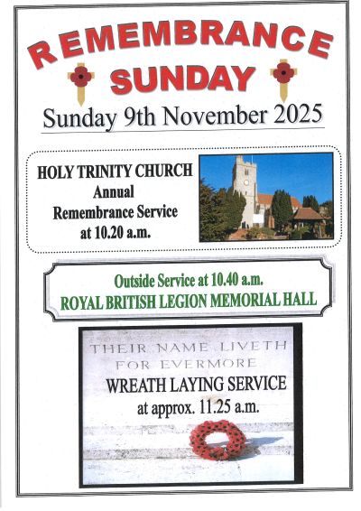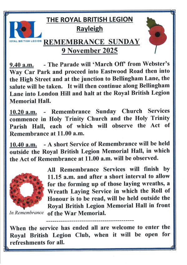 The Remembrance Parade and Service will take place on Sunday 9th November 2025